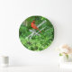 O belo pássaro do Estado de Ohio é o cardeal vermelho e traz um toque de Summer e a beleza da natureza para sua casa com este relógio de parede do designerO fotógrafo Jo-Ann Hayden
