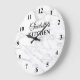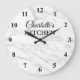 Design de relógio de parede da cozinha com textura branca de fundo clássico de mármore com números. Impressão elegante para cozinha, negócios, compro, companhia, casamento, prática dentária, etc. Adicione o seu próprio nome personalizado, letras iniciais monográficas, aspas inspiradoras, palavras divertidas, citação etc. Condecoração de paredes quentes para sala de espera, escola, casa, escritório, trabalho, etc. Decoração de casa personalizada.