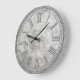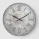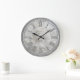 Um relógio de parede neutro que parece muito pesado! Um relógio de textura de concreto de cinza pálida com números romanos falsos de chumbo - uma escolha perfeita para decoração moderna e industrial da casa.