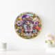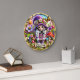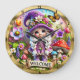 Este encantador relógio redondo apresenta uma cena impressionante e ilustrada de capricho, perfeita para um toque acolhedor para qualquer espaço em Sydney. Uma gnoma bonita com cabelos brancos trançados e um chapéu floral roxo e vestido fica em meio a um jardim vibrante cheio de flores coloridas, cogumelos, e borboletas fluindo sob um céu azul e rosa macio. Um cartaz na parte inferior diz "BEM-VINDO". O relógio tem uma moldura decorativa de cor dourada, melhorando sua fascinante e inspirada na fantasia.