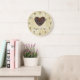 Tema do café: o relógio da parede da cozinha em marrom e cor bege com imagem gráfica do café fresco na face do relógio e texto que você pode personalizar. Projetado para amantes de café.