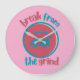 Um relógio com um carrinho de golfe, com a frase "Quebre a Rotina" centrada em torno da imagem. O design sugere uma fuga relaxante e tranquila dos estresses diários.