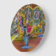 Uma bela fotografia de cavalos carrossel coloridos impressos num relógio de parede redonda.