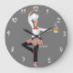 Uma ilustração de chef flambéing faz disso um relógio de cozinha excelente, ou um bom presente para amantes de comidas de todos os tipos.