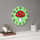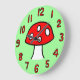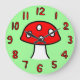 Um relógio com um cogumelo vermelho e números vermelhos correspondentes. O fundo verde pode ser alterado para qualquer cor.