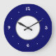 Este relógio da cozinha é simples no design, mas bate seu peso! Um design azul real minimalista com um centro círculo branco com uma pequena borda de cinzas. Capturado por algarismos brancos divertidos. Se você está procurando um relógio de ponto, é isso! A personalização é oferecida. Disponível em formas quadradas e redondas.