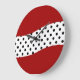 Relógio de parede moderno com combinação linda de cor vermelha, preta e branca e bolinhas bonito na face do relógio. Projetado para qualquer cozinha, quarto, sala ou dormitório. Criado para senhoras ou meninas e vamos você decora suas paredes com estilo.