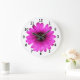 Relógio brilhante e alegre com uma foto de fundo de uma margarida rosa