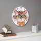 Face aquosa de um gato bonito vestindo um arco laranja. O relógio tem números e também pode ser usado para uma sala para crianças. Obrigados para Creative Fabrica para o design do gato.