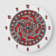 Este design de círculo concêntrico contém camadas de padrões geométricos que se assemelham a engrenagens que você pode encontrar em máquinas modernas ou até alienígenas, em tons de vermelho e cinza.
