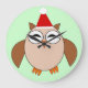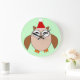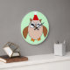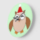 Este relógio fantástico apresenta um desenho engraçado de uma coruja de Natal com olhos sonolentos, um pequeno bico laranja e pequenos pés cor de laranja giros. A coruja é marrom com uma barriga de creme e está vestindo um chapéu de Papai Noel vermelho e branco pronto para o Natal.