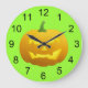 Uma abóbora de aspecto brilhante sobre um fundo brilhante de verde limão adoraria este relógio. Isso seria fantástico na parede de qualquer criança. Selecione entre várias formas e tamanhos. A cor de fundo é personalizável.