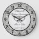 Um Design da Digitalbcon Images que apresenta um tema prateado e preto com uma variedade de imagens, formas, padrões, estilos e fontes personalizadas neste Relógio "Aniversário do Casamento Prateado", de tipo único. Este design elegante e atraente faz o presente ideal para o Casal de aniversário na ocasião especial. Diga Feliz Aniversário de Prata com este Relógio de Parede especialmente projetado.
