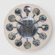1934 Cabriolet Hupmobile Round Wall Clock-está criado com fotos de dentro e tiradas do antigo veículo Hupmobile. Cada número do relógio está em uma fotografia única deste carro primitivo. Os números do relógio são feitos de um padrão de aço e saem do centro. As fotos também são guardadas em metal. O centro do relógio tem duas opções, mantenha a que você quiser e exclua a outra. Uma é a grelha dianteira do veículo, uma é a vista exterior frontal. O fundo deste relógio é um olhar cremoso de couro branco.