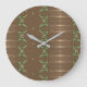 Um relógio de designer com um impressão de folha nos browns que pode ser mudado para qualquer cor para corresponder ao seu decorador doméstico.
