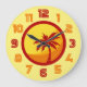 Design de verão do estilo Vintage 70. Design de onda de calor clássico com palmeira. Cor tropical quente de amarelo, laranja e vermelho. Bravo, divertido, relógio retro da praia. Sem versão de texto em branco.