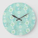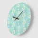 Este relógio bonito é cheio de um legal padrão retrô em tons de azul, verde e laranja. O padrão inclui rajadas estelares, formas de lua quarteirão e círculos irregulares.