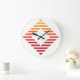 Relógio de Parede, 10" de madeira natural redonda Grande Relógio com forma de diamante fina e listrada. Laranja a vermelha arte de operações. Perfeito para casa ou escritório procurando um relógio moderno.
