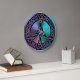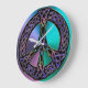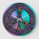 Legal Colorido Relógio de Sinais de Paz Celta. Um padrão de nó roxo, verde, azul, prata e sem fim de ouro lavanda em forma do símbolo clássico de paz em um legal gradiente tonto em verde azul e roxo ao fundo. Uma fantasia neo-celta de paz e amor eterno. Os nós celtas são uma forma tradicional de arte celta, normalmente caracterizada por não ter começo e fim, que simboliza o amor eterno e o ciclo infinito da vida. Eles foram considerados um símbolo favorito em muitas culturas e civilizações ao redor do mundo e com muitos praticantes de magia ou misticismo hoje. O sinal de paz é um símbolo de paz universalmente reconhecido. #paz