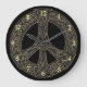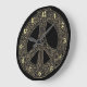 Relógio de Sinal de Paz Celta. Um padrão de nó preto e ouro sem fim na forma do clássico sinal de paz. Os nós celtas são uma forma tradicional de arte celta, normalmente caracterizada por não ter começo e fim, que simboliza o amor eterno e o ciclo infinito da vida. Eles foram considerados um símbolo favorito em muitas culturas e civilizações ao redor do mundo e com muitos praticantes de magia ou misticismo hoje. O sinal de paz é um símbolo de paz universalmente reconhecido. #paz #lepard