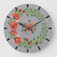 Relógio dos Peonies Vermelhos em um fundo de cinza. Design bonito permanente com botões e folhas verdes. Obrigados à Hungryjpeg para alguns dos elementos da design
