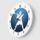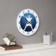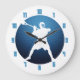 Atirador de Lacrosse. Bloqueado, cozido e pronto para o rock. Silhueta de jogador de lacrosse segurando pau, no meio de disparar uma foto sobre o objetivo. Design de emblema circular em blues com raios emanantes. relógio do jogador de lacrosse. Relógio do tema desportivo.
