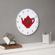 Um bule vermelho moderno e minimalista em um relógio branco com números de relógio escritos à mão. Atualize a decoração da sua cozinha com este presente personalizado de excelente.