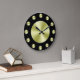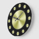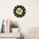 Um simples relógio de parede com fundo preto, mãos pretas e círculos ouros para marcar as horas e cobrir o rosto. Clique em Personalizar para adicionar texto ou imagens personalizadas, alterar cores de fundo e muito mais.