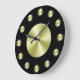Um simples relógio de parede com fundo preto, mãos pretas e círculos de ouro para marcar as horas e uma pequena face de ouro. Clique em Personalizar para adicionar texto ou imagens personalizadas, alterar cores de fundo e muito mais.