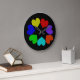 Este relógio incrível apresenta uma imagem digitalmente criada de um círculo de corações amorosos. Cada coração tem uma cor diferente do arco-íris. Os corações vermelho, laranja, amarelo, verde, azul, indigo e violeta são uma forma divertida de expressar seu amor por um namorado, namorada, marido ou esposa. O fundo é preto para criar o impacto máximo.