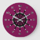 A roda do navio em preto e branco. Fundo de vinho tinto. Os algarismos com aspecto metálico são posicionados à volta do bordo.