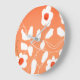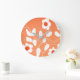 Um relógio de designer em um pêssego e acentuado em vermelho e branco. As flores brancas podem ser personalizadas a qualquer cor junto com a mensagem inspiradora de estimar o texto das pequenas coisas, ou o texto é removível.