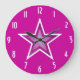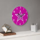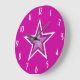 Design moderno com uma estrela rosa e branca "brilhante" num fundo rosa. Relógio com um design personalizável para você personalizar com seu próprio texto, imagens e ideias. Note que esta é uma imagem impressa criada usando fotografias originais e técnicas digitais, que ela não brilha ou contém faíscas reais.