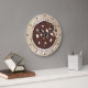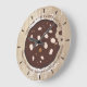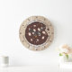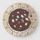 Um biscoito grande com chip de chocolate, com talha de farinha e fundo de madeira falso neste relógio da cozinha perfeito para uma padaria ou seu biscoito favorito, personalizado com texto de cima e de baixo.