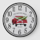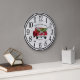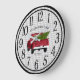 Um caminhão de coleta vermelho vintage é carregando árvore de Natal recém cortada. O fundo é cinza e xadrez de búfalo branca. Serão oferecidos em vários planos. Você pode personalizar facilmente seu relógio rústico usando a ferramenta design do Zazzle fácil de usar. Este relógio faria um maravilhoso aquecimento doméstico, presente para os recém-casados ou para qualquer um que ama o estilo da casa de fazenda. O relógio fará parte de uma coleção.