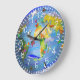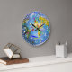 Um relógio de parede de John Dyer 'Last Chance to Paint' que apresenta o mapa mundial e muitos animais ameaçados. Pinguim, morsa, urso polar, pangolina, panda vermelha, baleia azul, tartarugas, orangotango, papagaio da floresta amazônica e muito mais.