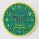 O criador de colcha ou costureira na sua vida vai adorar este relógio personalizado para a sala de costura. É um clássico design de tapete verde impresso com fortes algarismos amarelos fáceis de ler. O design redondo vem em dois tamanhos. Veja também o relógio quadrado e muitos outros relógios temáticos únicos nesta coleção no Clock O Rama no Zazzle.