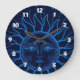 O sol celeste é marinho azul e azul claro. Números brancos com mãos pretas.