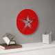 design moderno com uma estrela vermelha e branca "brilhante" sobre fundo vermelho. Relógio com um design personalizável para você personalizar com seu próprio texto, imagens e ideias. Note que esta é uma imagem impressa criada com fotografias originais e técnicas digitais, que não brilha nem contém faíscas reais.