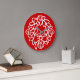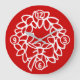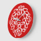 O relógio da parede redonda da coroa de Natal em vermelho e branco.