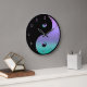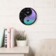 Relógio Yin Yang iridescente a preto, com Lavanda metálica e Aqua. Traga os símbolos de equilíbrio, harmonia, unidade e integridade para a sua linha do tempo com este relógio da parede de yin-yang. Fazer que seja fácil manter o olho no tempo para que você nunca perca suas coisas favoritas porque você leva uma vida ocupada.