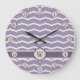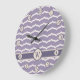 Desfrute de um padrão zigue divertido com um florescimento bonito à medida que o zigue bege se curva para cima e para baixo para pontos em uma forma inspirada pelas pétalas de lótus. Este zigue-zague florescente está sobre um agradável fundo lilático para um contraste caloroso. Personalize a versão inicial deste relógio para fazer uma decoração para a sua casa que seja única para você.