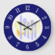Um relógio de cozinha ou restaurante com um conjunto de prata azul em um guardanapo de mesa de creme bonito embelezado em dourados com números brancos opcionais, personalize-o para adicionar seu nome ou mensagem, até mesmo salve seus designs para mais tarde.