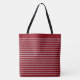Esta bolsa de tote é mostrada com um Crimson divertido e uma design de impressão de Cinza de riscas de . Tamanho grande mostrado. Tem pulseiras negras. Personalize este item ou comprar conforme projetado.