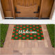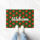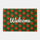 Grande tapete de morango com texto de boas-vindas. Adicione sua própria mensagem, nome da família, monograma, sobrenome ou citação engraçada. Boa ideia de presente para uma nova casa/lar ou festa de noivado/aniversário. Fundo de cor personalizado. Tipografia de na moda com padrão de fruta. Sinal de porta personalizável modelo. Crie seu próprio tapete/tapete de entrada pequeno ou grande para a porta da frente/entrada ou sala/local. decorações/decorações personalizáveis para sua casa. Adicione as suas iniciais ou apelido de letra monograma. Fruity red e green comida.