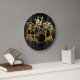 Reproduzindo o relógio de parede Contemporâneo do tambor com um tambor em ação. As cores são preto e ouro.