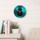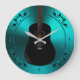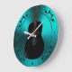 Violão Acústico Negro No Relógio De Música Teal. Uma guitarra acústica preta em verde azul-lacre metálico para seu guitarrista favorito, músico ou amante de música.