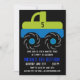 Um legal caminhão de monstro azul e verde com a idade do seu filho na modelo de convite de aniversário. Apenas preencha os detalhes da festa para este convite personalizado.