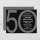 Legal convite de 50 anos para cinzas e preto moderno, apresenta grandes números cinco e zero, com o dentro de texto do seu partido personalizado. Convide amigos e família para a sua festa monumental de marco!