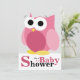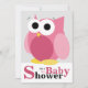 Convites de chuveiro para bebês de coruja lateral branca com uma grande coruja rosa ilustrada na frente e os detalhes do chá no verso. Outros produtos correspondentes disponíveis mediante pedido.